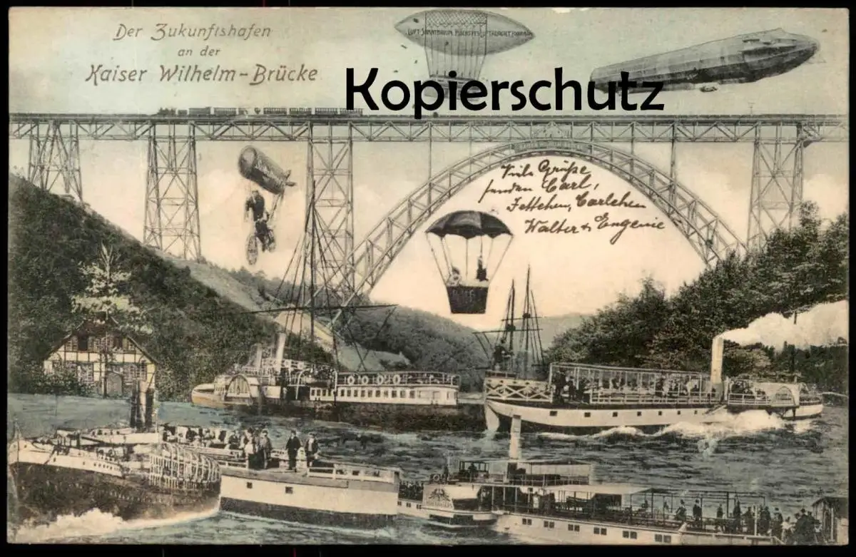 ALTE POSTKARTE REMSCHEID DER ZUKUNFTSHAFEN AN DER KAISER-WILHELM BRÜCKE Zeppelin airship Ballon Zukunftskarte postcard