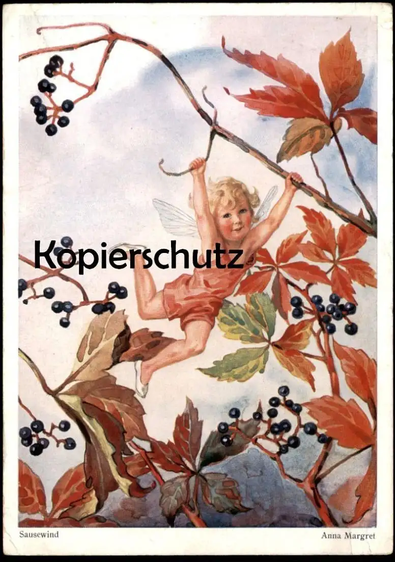 ALTE POSTKARTE SAUSEWIND ENGEL ELFE BLUME PHANTASIE KIND ANNA MARGRET elf angel fantasy Ansichtskarte postcard cpa AK