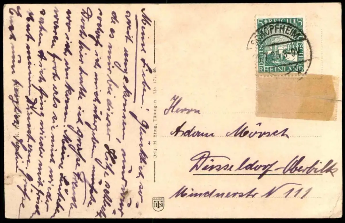 Gelaufen: 26.07.1925 mit Stempel Schopfheim nach Düsseldorf-Oberbilk
