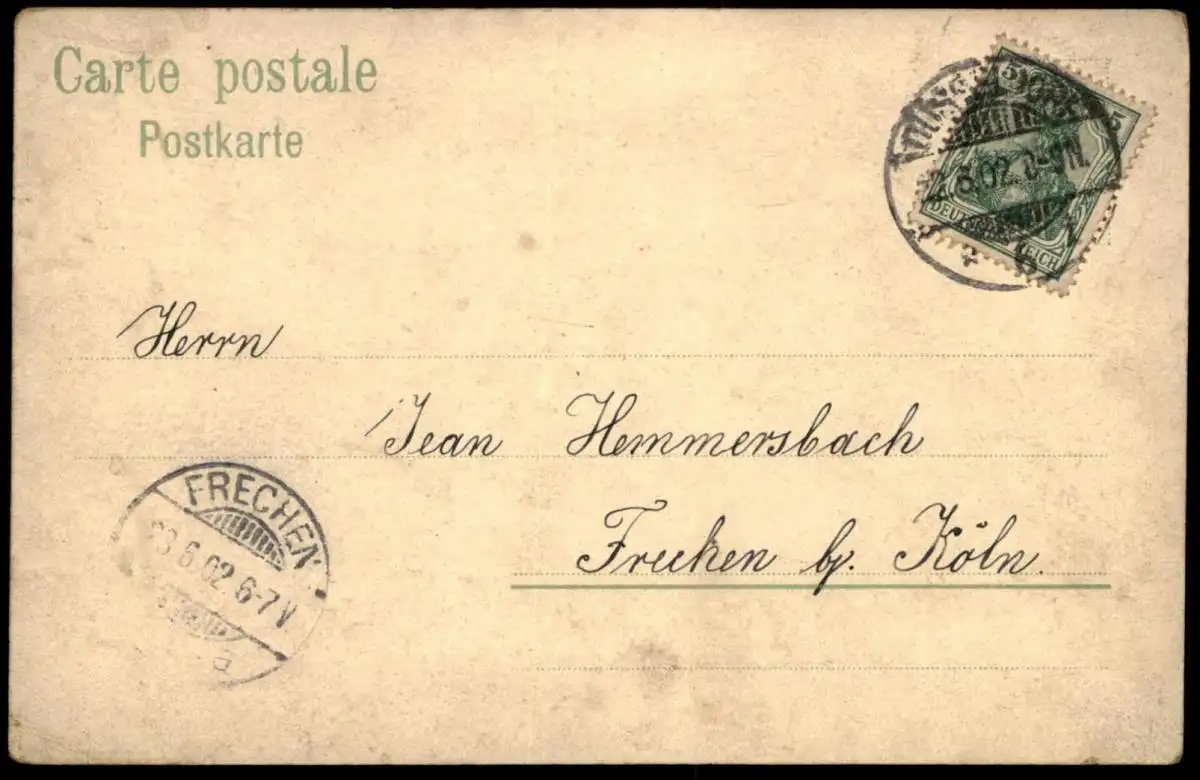 Gelaufen: 22.06.1902 mit Stempel Düsseldorf nach Frechen bei KölnErhaltung (s. Scan): gut / 915146
