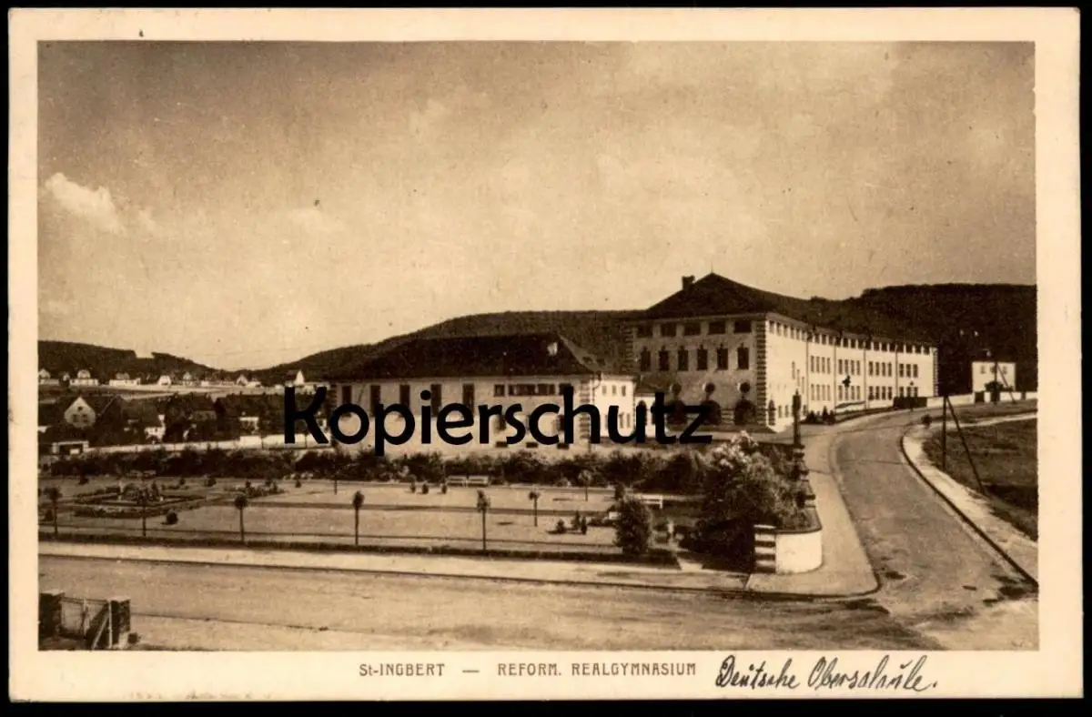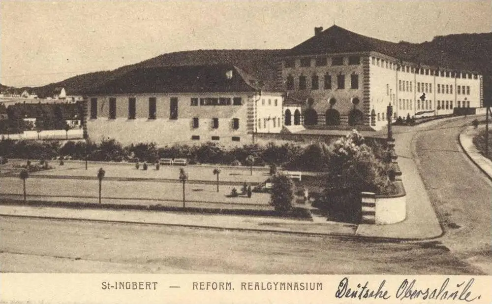 ALTE POSTKARTE ST. INGBERT REFORMIERTES REALGYMNASIUM SAAR SAARGEBIET Deutsche Oberschule (handschritlich) cpa postcard