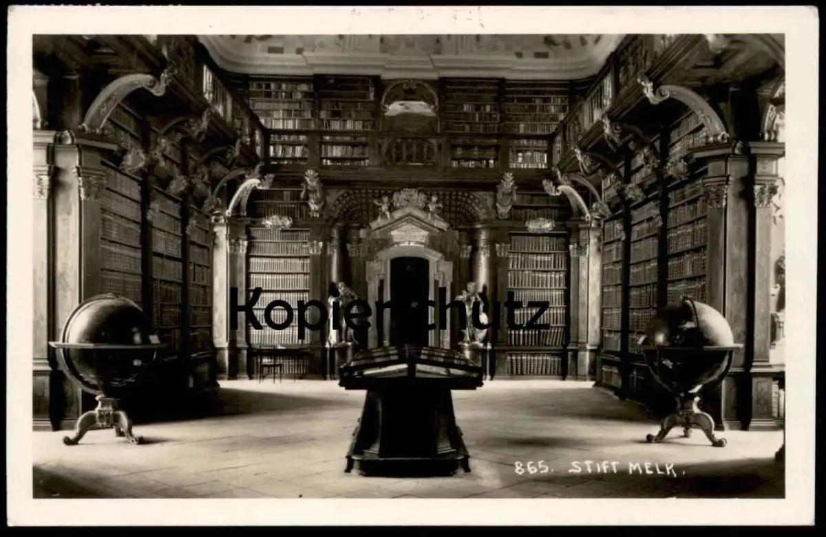 ALTE POSTKARTE STIFT MELK BIBLIOTHEK 1932 Library Bibliotheque Globus terrestrial globe terrestre Ansichtskarte AK cpa