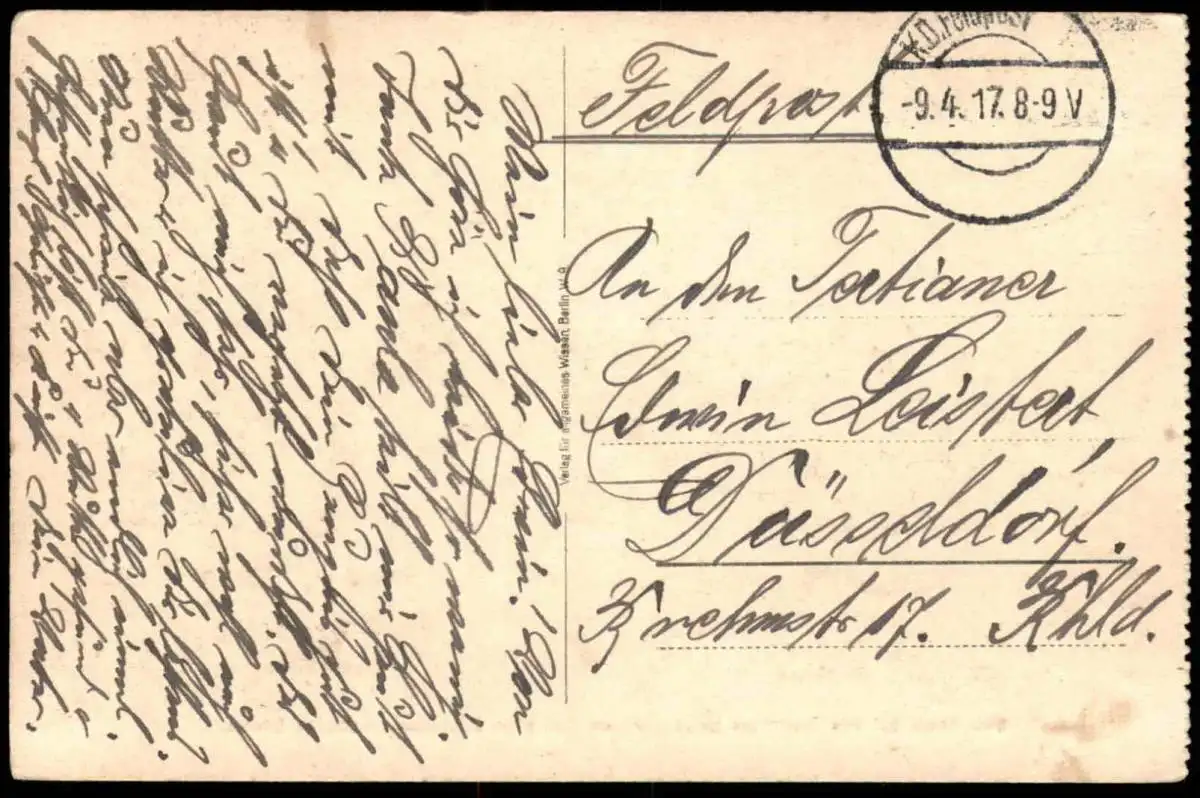 Gelaufen: 09.04.1917 als Feldpost nach Düsseldorf