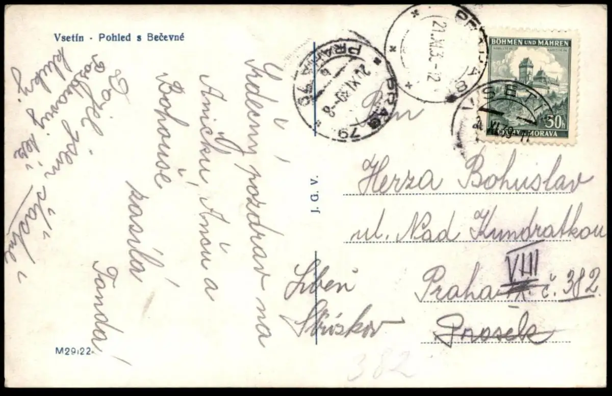 Gelaufen: 20.11.1939 mit Stempel Vsetin nach PrahaErhaltung (s. Scan): gut / 916394