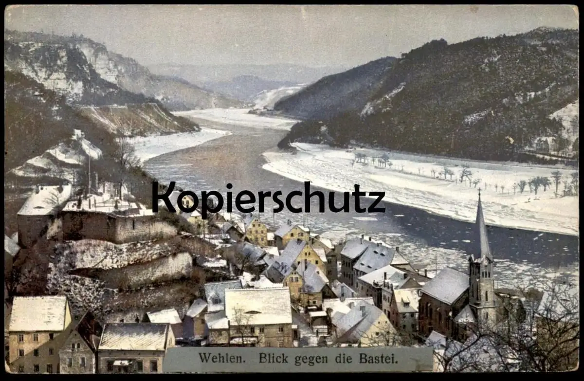 ALTE POSTKARTE WEHLEN BLICK GEGEN DIE BASTEI SCHNEE WINTER NENKE & OSTERMAIER DRESDEN PHOTOCHROMIE Ansichtskarte cpa AK
