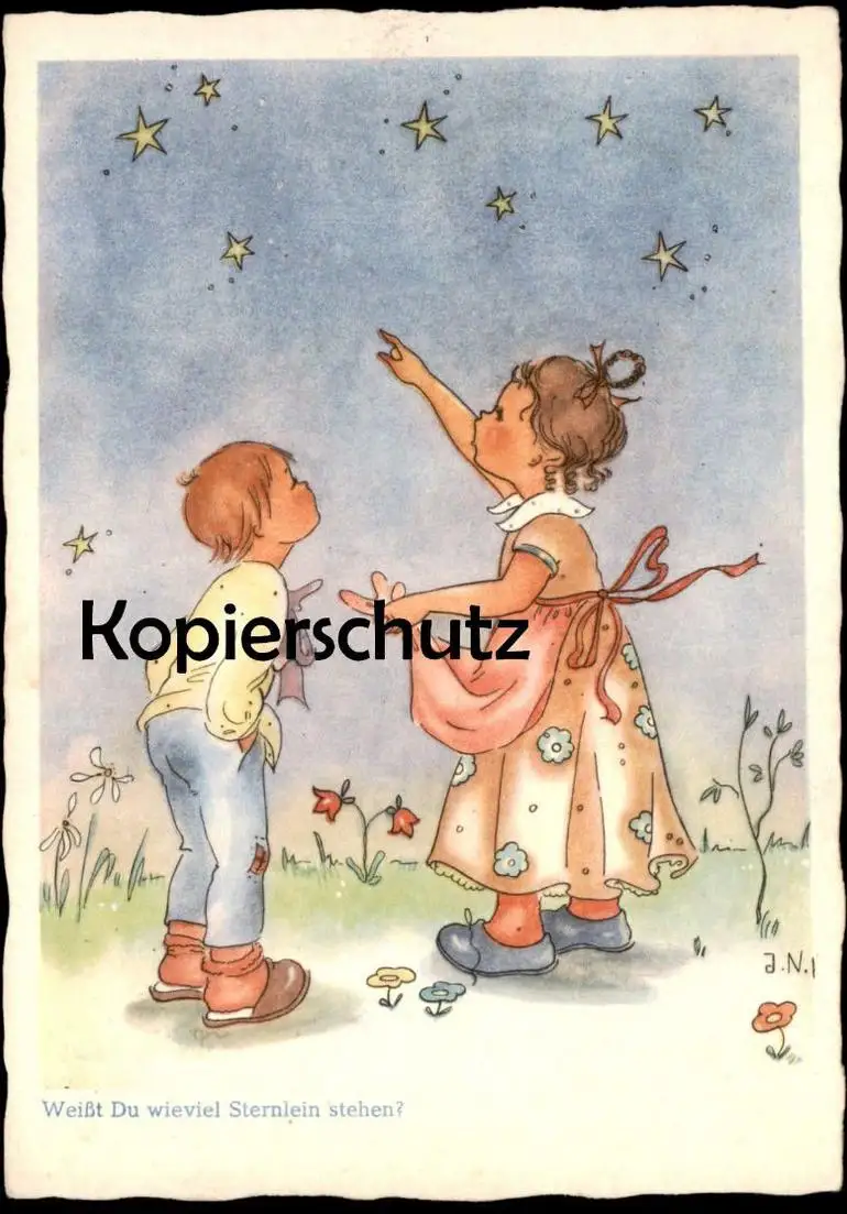 ALTE POSTKARTE WEISST DU WIEVIEL STERNLEIN STEHEN MÄDCHEN JUNGE KIND SIGN. ILSE NORDHAUS enfant child postcard cpa AK