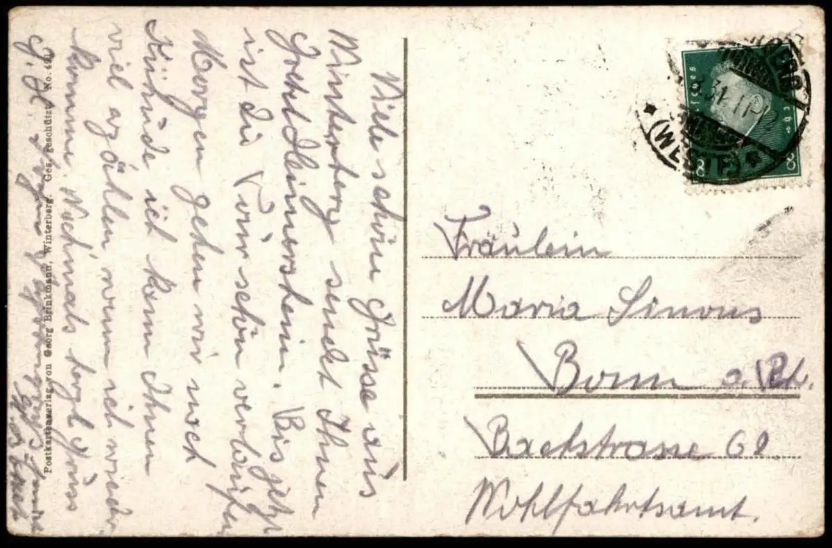 Gelaufen: 14.08.1931 mit Stempel Winterberg nach Bonn