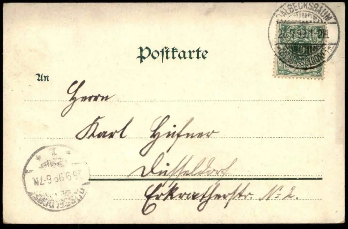 Verlag: G. Sinnhoffer & Sohn, VelbertGelaufen: 26.09.1899 mit Stempel Dalbecksbaum nach DüsseldorfErhaltung (s. Scan): gut / 915375