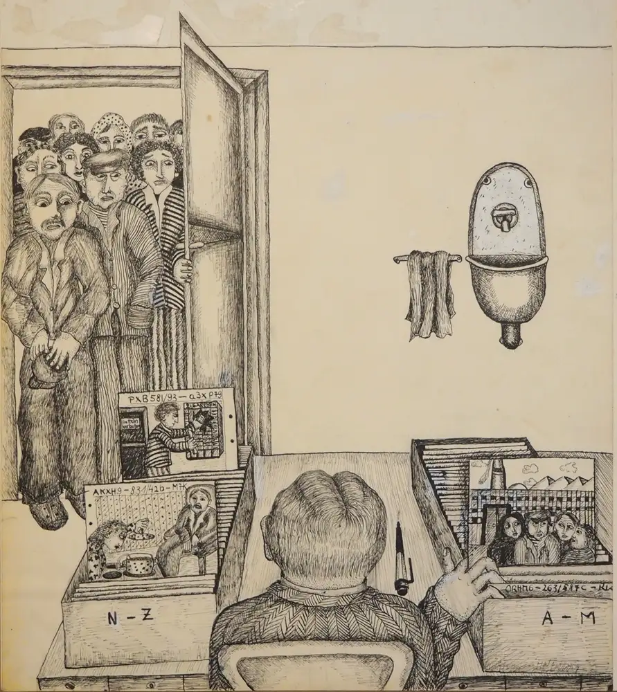 ALU (Arbeitslosenunterstützung). Original- Federzeichnung, Ungeheuer, Natascha