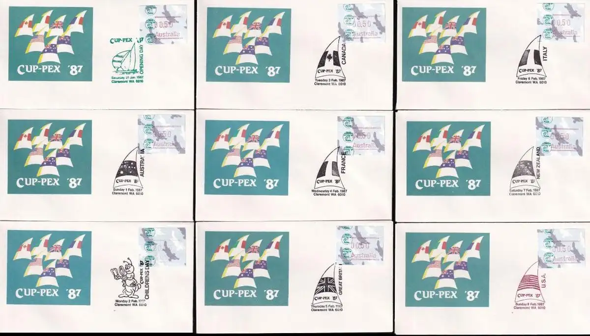 AUSTRALIEN 1987 Mi-Nr. ATM 7 Automatenmarken 9 Briefe Cup-Pex mit versch. Stempeln