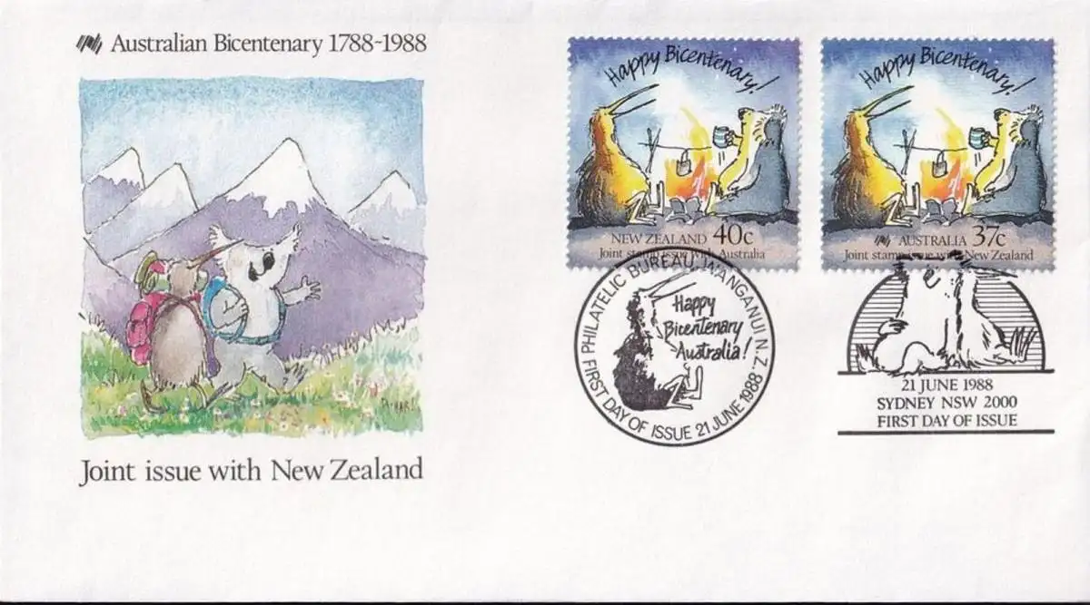 AUSTRALIEN 1988 Mi-Nr. 1118 + Neuseeland Mi-Nr. 1032 FDC