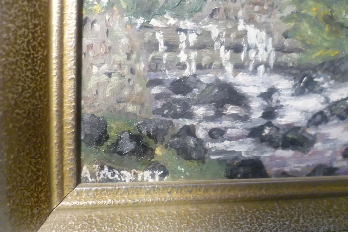 Adolf Wagner1861-1933 "Schwarzwaldgehöft an einem Bachlauf" links signiert A .Wagner