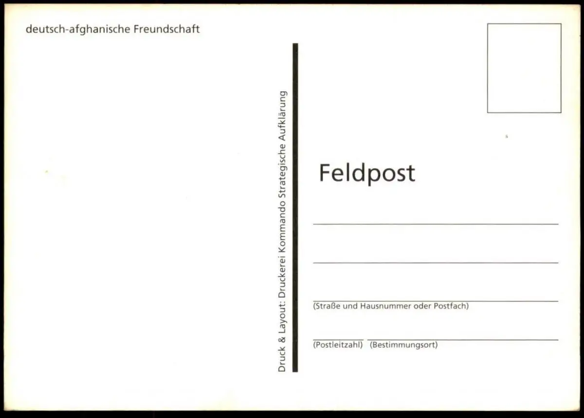 ÄLTERE FELDPOST POSTKARTE DEUTSCH-AFGHANISCHE FREUNDSCHAFT BUNDESWEHRVerlag: Druckerei Kommando Strategische Aufklärung