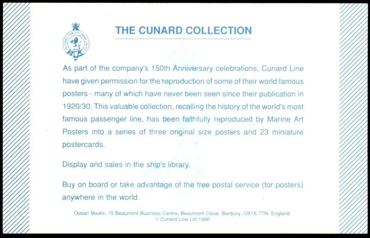 ÄLTERE KARTE CUNARD WHITE STAR LINE VON 1990 REPRO VON POSTER Collection of the 150th Anniversary photo cpa