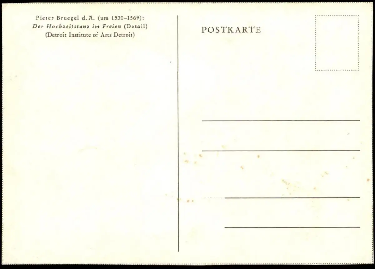 ÄLTERE KÜNSTLER POSTKARTE PIETER BRUEGEL DER HOCHZEITSTANZ IM FREIEN DETROIT INSTITUTE OF ARTS DETROIT postcard cpa AK