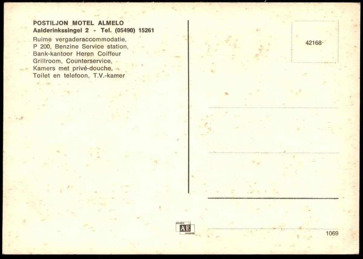 ÄLTERE POSTKARTE ALMELO POSTILJON HOTEL RUIME BENZINE SERVICE STATION COIFFEUR GRILLROOM KOCH Ansichtskarte postcard cpa