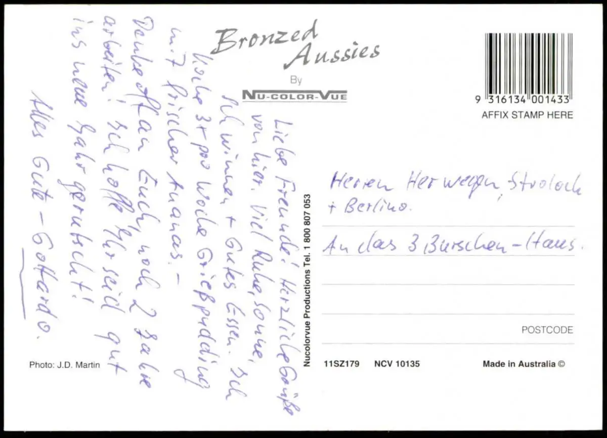 ÄLTERE POSTKARTE AUSTRALIA BRONZED AUSSIES Photo J. D. Martin Aussie nue nu homme nus nude man nudist Mann cpa postcard