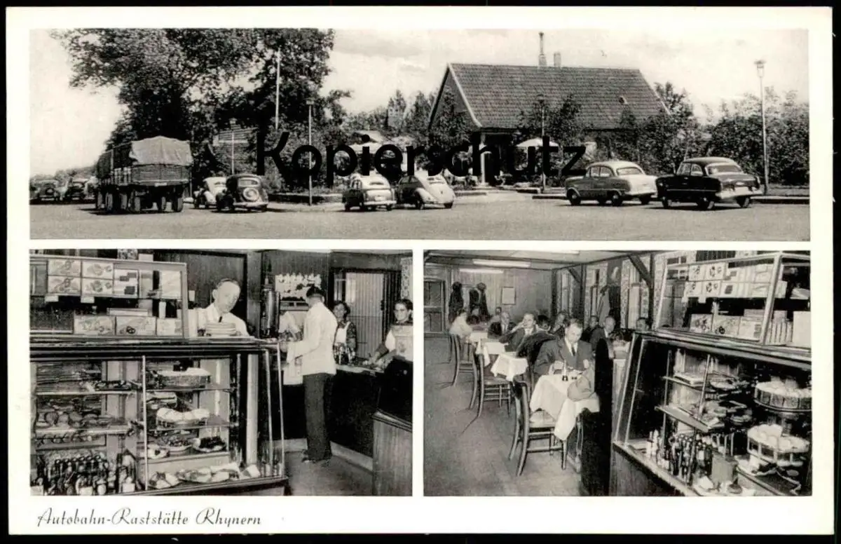 ÄLTERE POSTKARTE AUTOBAHN-RASTSTÄTTE RHYNERN HAMM VW KÄFER KELLNER KUCHEN BIER LEBKUCHENVerlag: Foto Caspers, Hamm