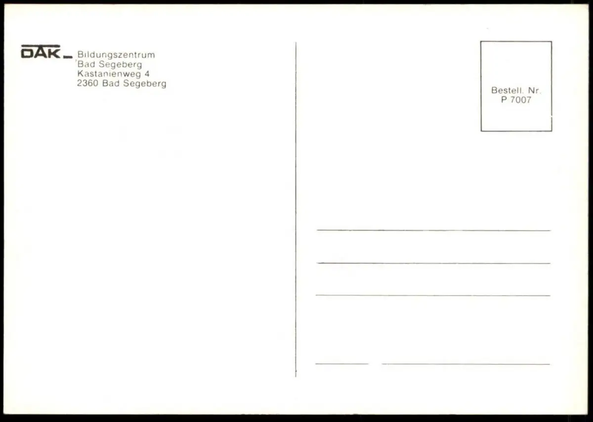ÄLTERE POSTKARTE BAD SEGEBERG DAK BILDUNGSZENTRUM KASTANIENWEG Krankenkasse Ansichtskarte AK cpa postcard