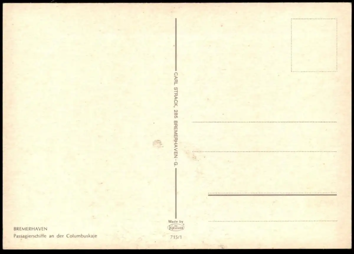ÄLTERE POSTKARTE BREMERHAVEN PASSAGIERSCHIFFE AN DER COLUMBUSKAJE HAFEN VERM. MS BERLINVerlag: Carl Strack, BremerhavenGelaufen: neinErhaltung (s.Scan): gut / 916681