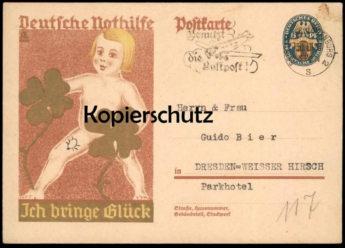ÄLTERE POSTKARTE DEUTSCHE NOTHILFE GANZSACHE 1928 ICH BRINGE GLÜCK KLEEBLATT KIND shamrock Ansichtskarte AK postcard cpa