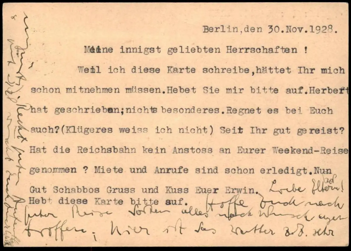 Gelaufen: 30.11.1928 mit Stempel Charlottenburg nach Dresden Parkhotel Weisser Hirsch