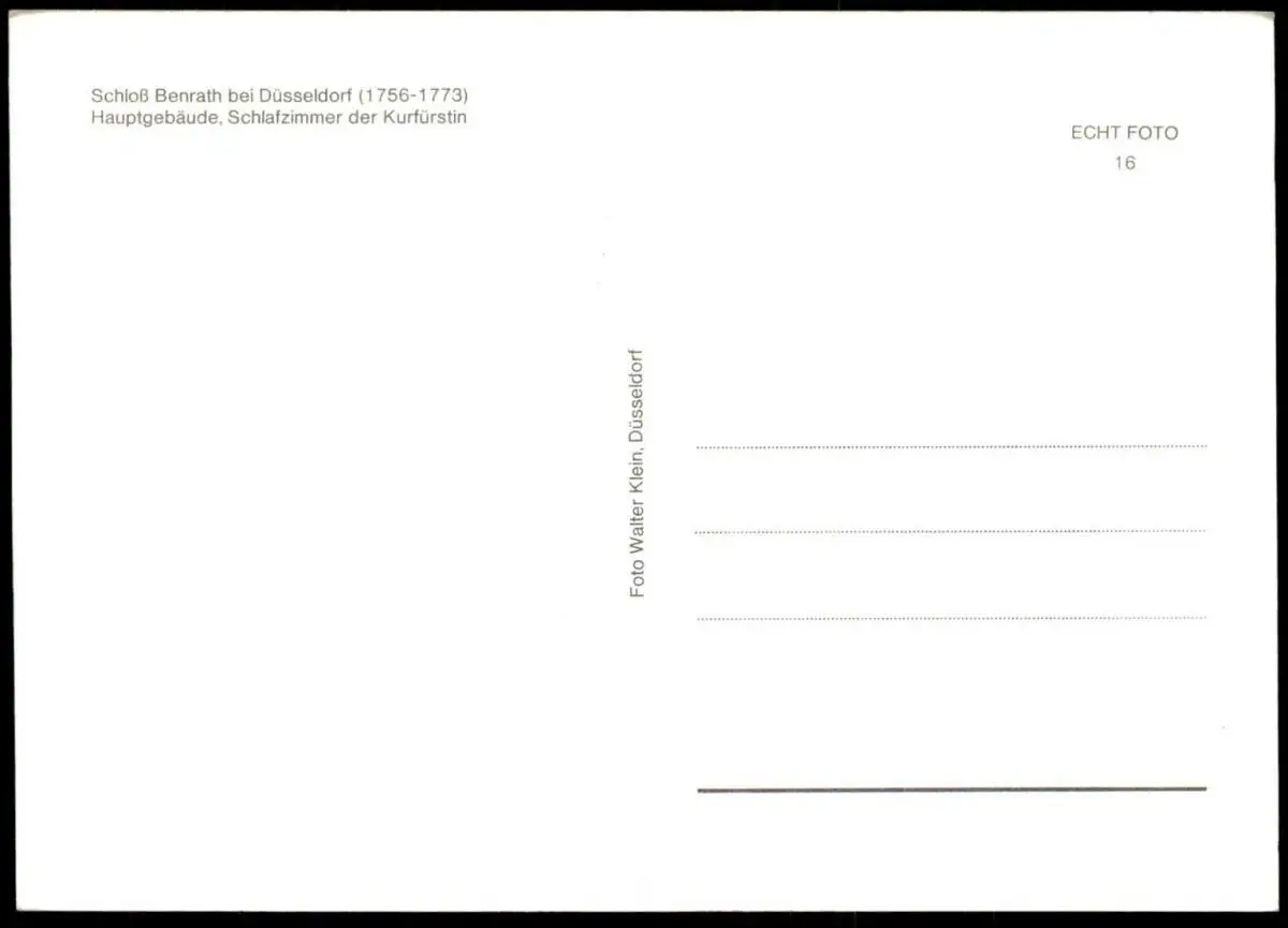 ÄLTERE POSTKARTE DÜSSELDORF SCHLOSS BENRATH HAUPTGEBÄUDE SCHLAFZIMMER KURFÜRSTIN chateau castle Ansichtskarte postcard