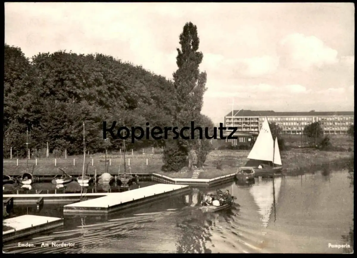 ÄLTERE POSTKARTE EMDEN AM NORDERTOR SEGELBOOT MOTORBOOT VERLAG FRIEDA PAMPERIN Ansichtskarte postcard cpa AK