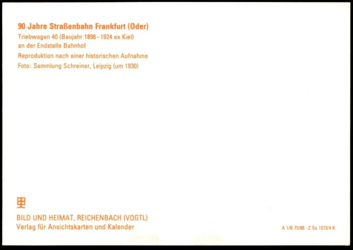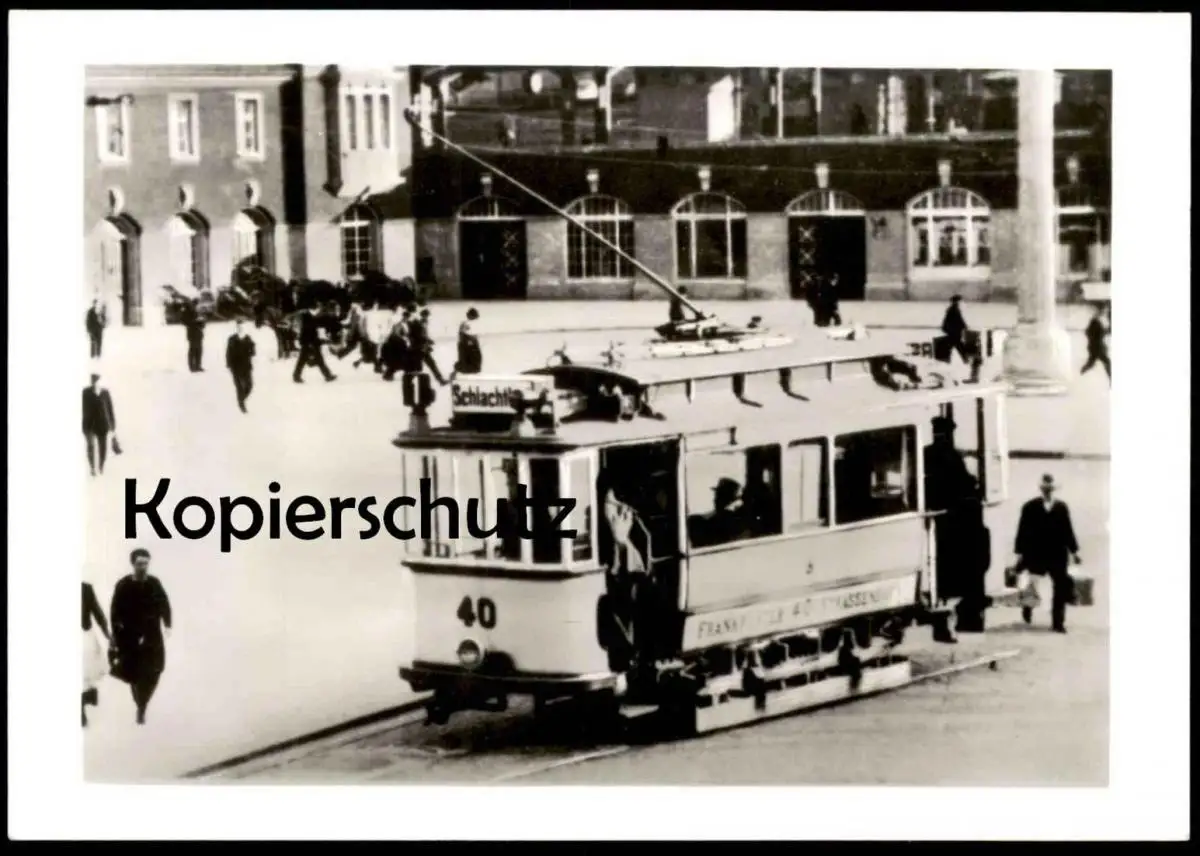 ÄLTERE POSTKARTE FRANKFURT ODER TRIEBWAGEN 40 (BAUJAHR 1896 - 1924 EX KIEL) AN DER ENDSTELLE BAHNHOF REPRODUKTION NACH EINER HISTORISCHEN AUFNAHMEVerlag: Bild und Heimat, Reichenbach; Foto: Sammlung Schreiner, Leipzig (um 1930)
