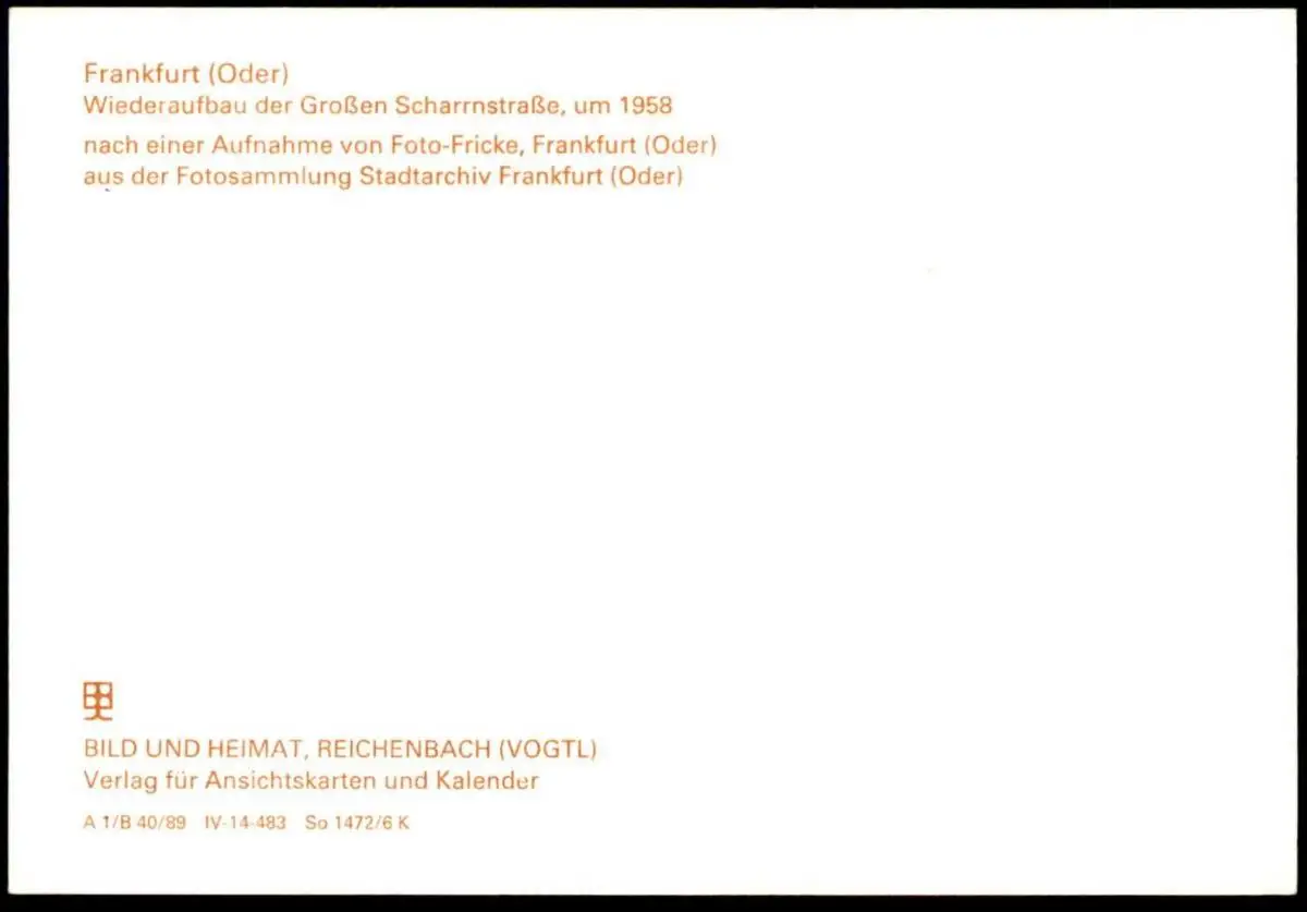ÄLTERE POSTKARTE FRANKFURT ODER WIEDERAUFBAU DER GROSSEN SCHARRNSTRASSE UM 1958 NACH EINER AUFNAHME VON FOTO-FRICKE FRANKFURT (ODER) AUS DER FOTOSAMMLUNG STADTARCHIV FRANKFURT (ODER)Verlag: Bild und Heimat, Reichenbach