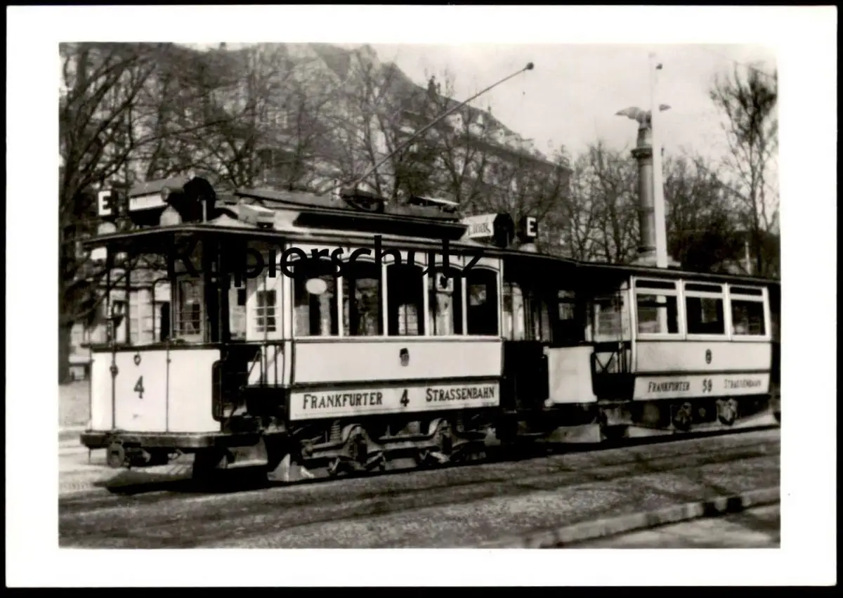 ÄLTERE POSTKARTE FRANKFURT ODER TRIEBWAGEN 4 (BAUJAHR 1898) MIT BEIWAGEN 59 (BAUJAHR 1900) AM WILHELMSPLATZ (ZEHMEPLATZ) REPRODUKTION EINER HISTORISCHEN AUFNAHMEVerlag: Bild und Heimat, Reichenbach; Foto: Sammlung Schreiner, Leipzig (um 1927)