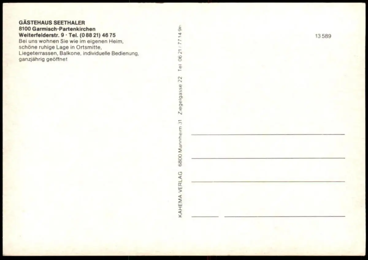 ÄLTERE POSTKARTE GARMISCH PARTENKIRCHEN GÄSTEHAUS SEETHALER HAUS WEITERFELDERSTRASSE