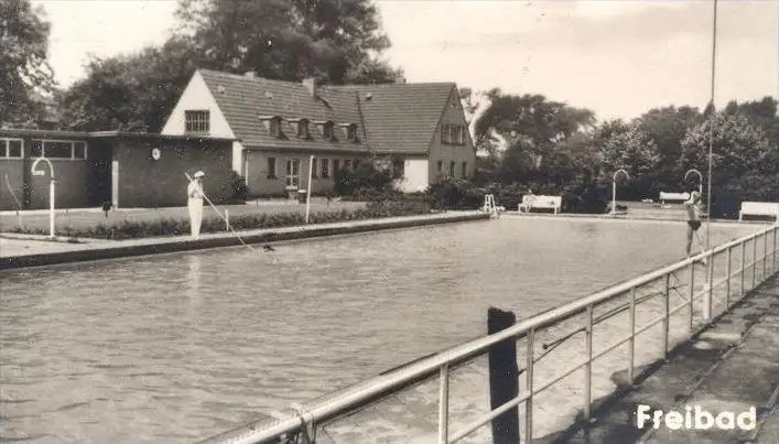 ÄLTERE POSTKARTE GELSENKIRCHEN-HESSLER THOMAS MORUS-SCHULE MELANCHTHON-SCHULE FREIBAD Bad swimming pool cpa postcard AK
