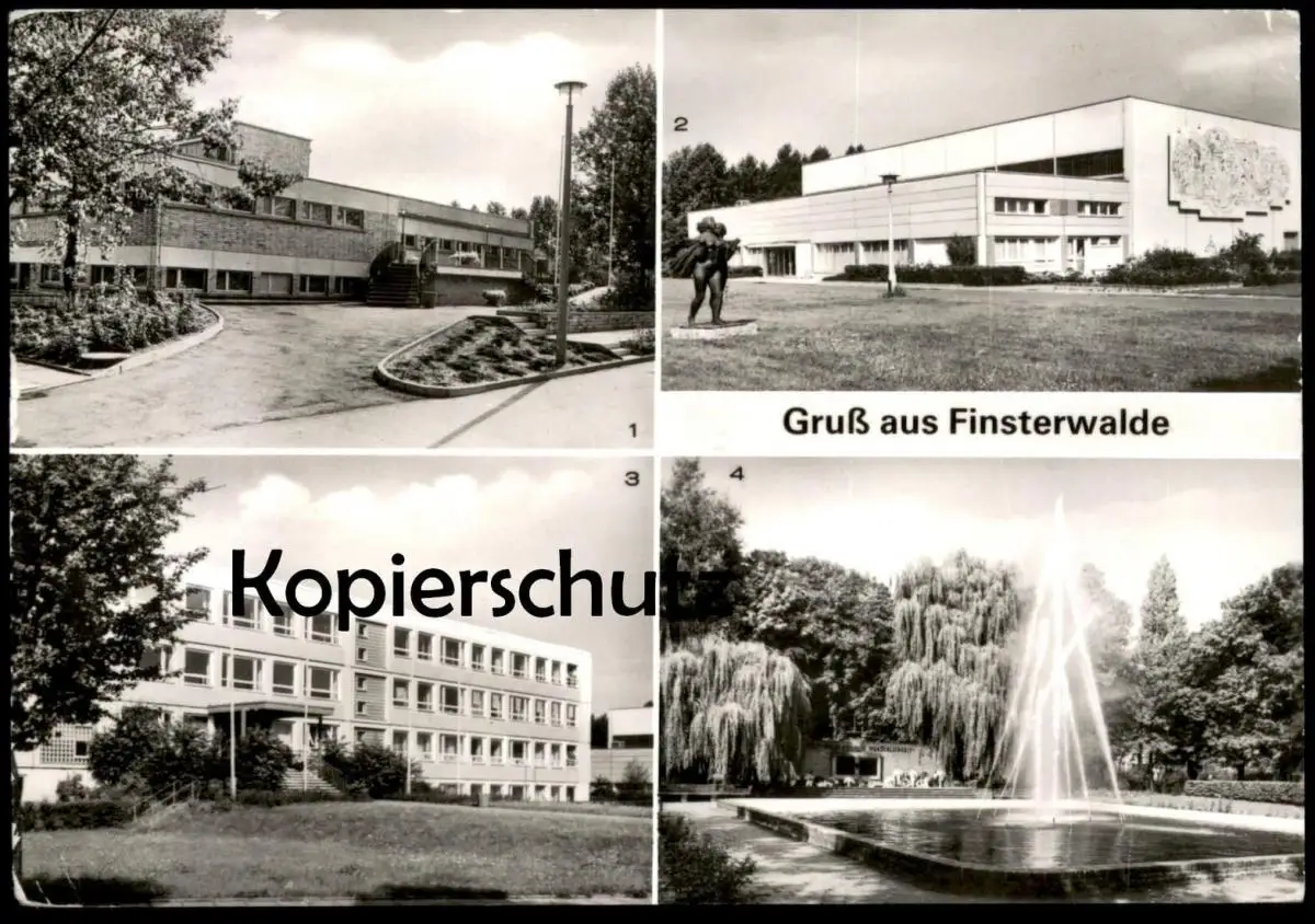 ÄLTERE POSTKARTE GRUSS AUS FINSTERWALDE SCHWIMMHALLE NEUE SPORTHALLE POLYTECHNISCHE OBERSCHULE VVN DENKMAL Ansichtskarte