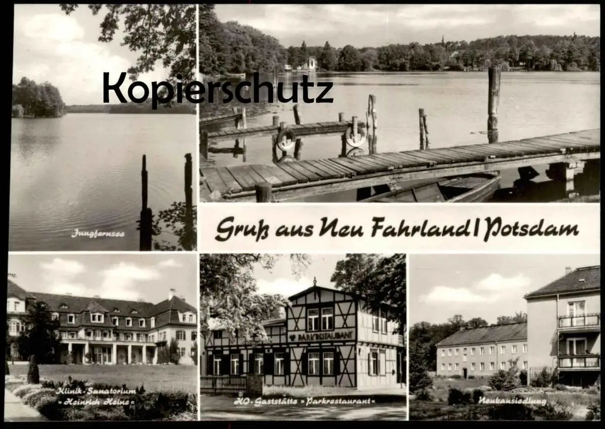 ÄLTERE POSTKARTE GRUSS AUS NEU FAHRLAND BEI POTSDAM SANATORIUM HEINRICH HEINE NEUBAUSIEDLUNG JUNGFERNSEE HO-GASTSTÄTTE PARKRESTAURANT Verlag: Planet Verlag, Berlin