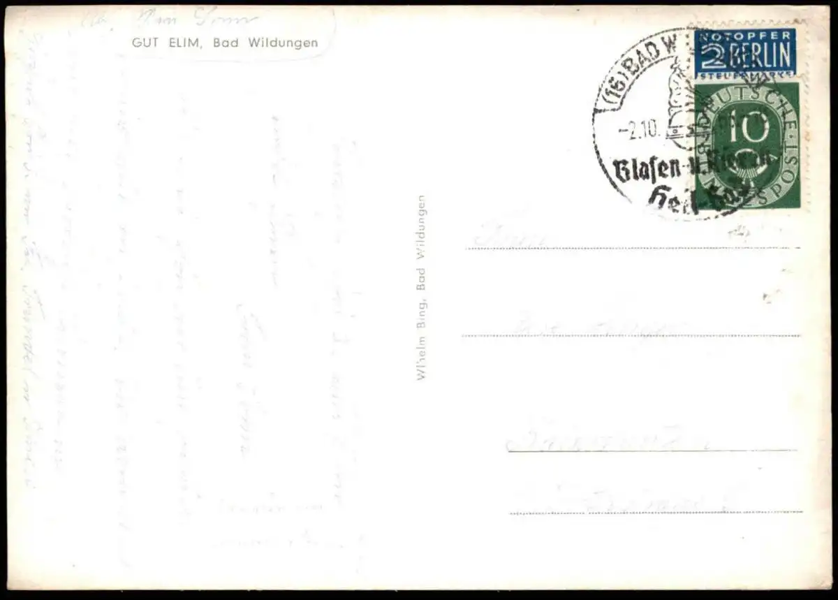 ÄLTERE POSTKARTE GUT ELM BAD WILDUNGENVerlag: Wilhelm Bing, Bad Wildungen
