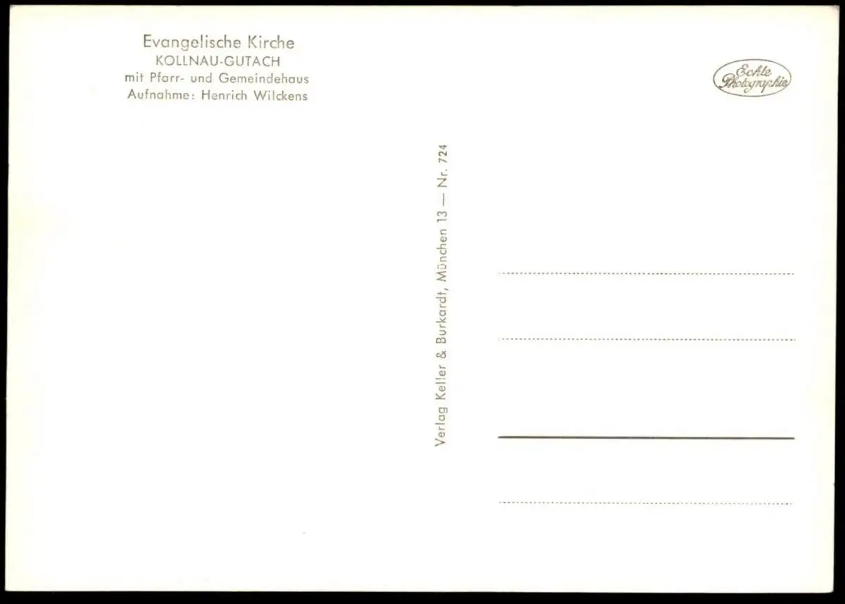 ÄLTERE POSTKARTE KOLLNAU GUTACH EVANGELISCHE KIRCHE MIT PFARR- UND GEMEINDEHAUS AUFNAHME HENRICH WILCKENSVerlag: Keller & Burkhardt, München 13