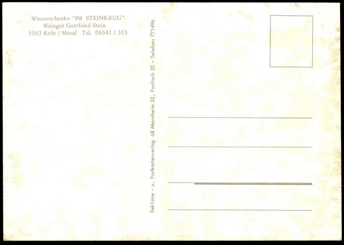 ÄLTERE POSTKARTE KRÖV WINZERSCHENKE IM STEINKRUG WEINGUT GOTTFRIED STEINVerlag: Reklame- und Postkartenverlag Mannheim