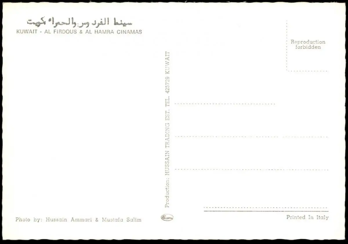 ÄLTERE POSTKARTE KUWAIT AL FIRDOUS AL HAMRA CINAMAS