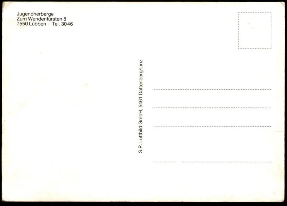 ÄLTERE POSTKARTE LÜBBEN JUGENDHERBERGE LUFTBILD SPREEWALDVerlag: S. P. Luftbild, Dattenberg Linz