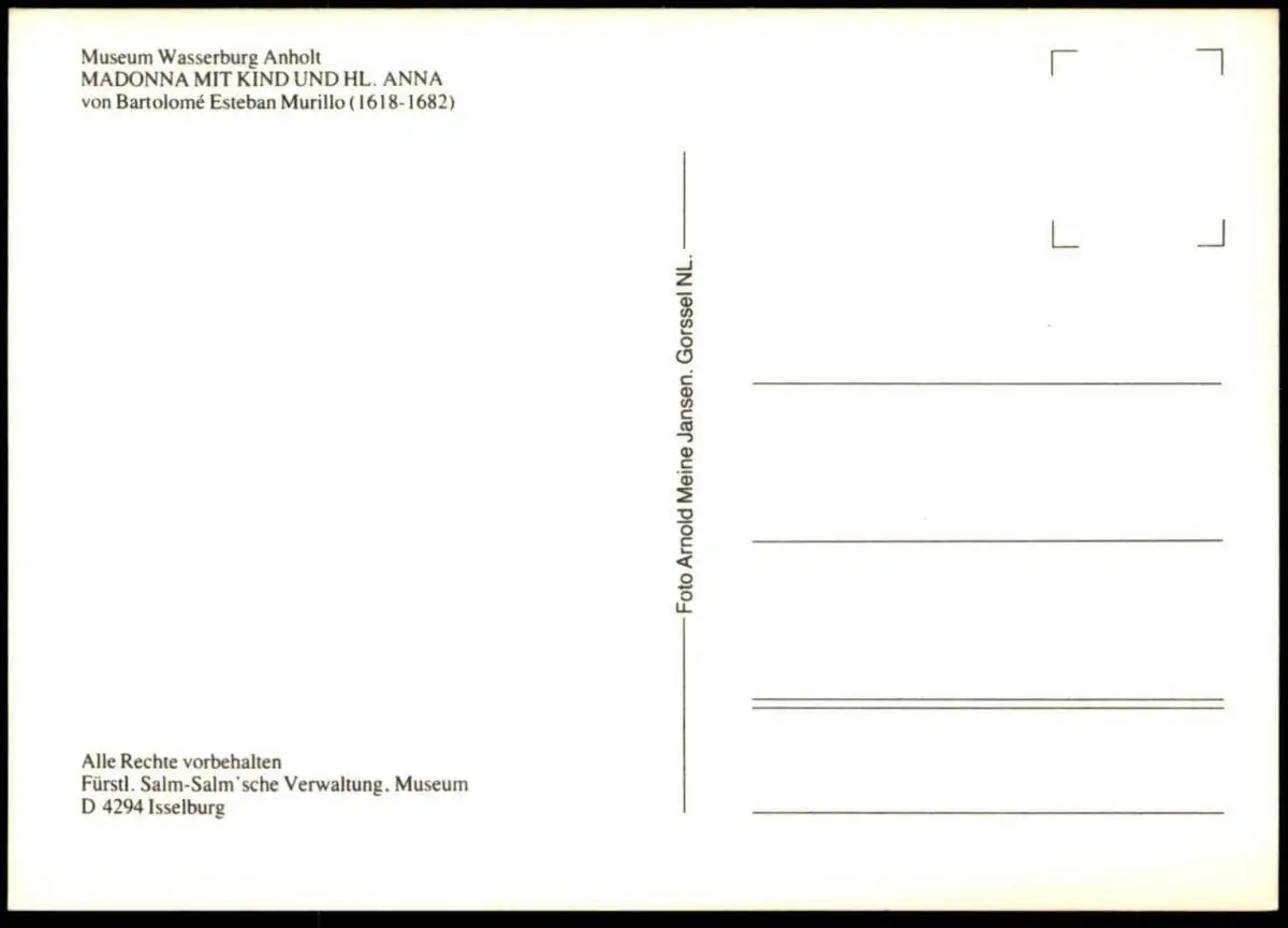 ÄLTERE POSTKARTE MADONNA MIT KIND & HEILIGE ANNA BARTOLOMÉ ESTEBAN MURILLO WASSERBURG ANHOLT ISSELBURGVerlag: Foto Arnold Meine Jansen, Gorssel, NL