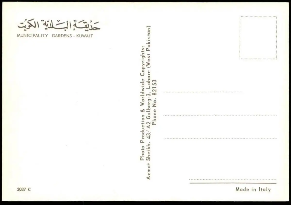 ÄLTERE POSTKARTE MUNICIPALITY GARDENS KUWAIT