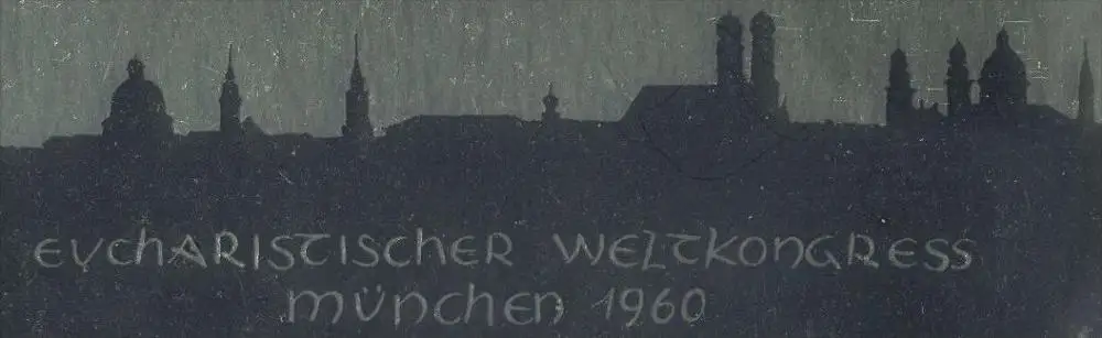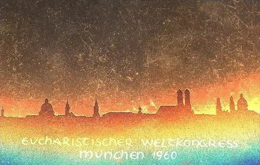 ÄLTERE POSTKARTE MÜNCHEN 1960 EUCHARISTISCHER WELTKONGRESS FRIEDENSTAUBE STADTSILOUETTE AUF GOLD-FARBEN GESTALTUNG FRANK HOFFMANNVerlag: Eucharistischer Weltkongress