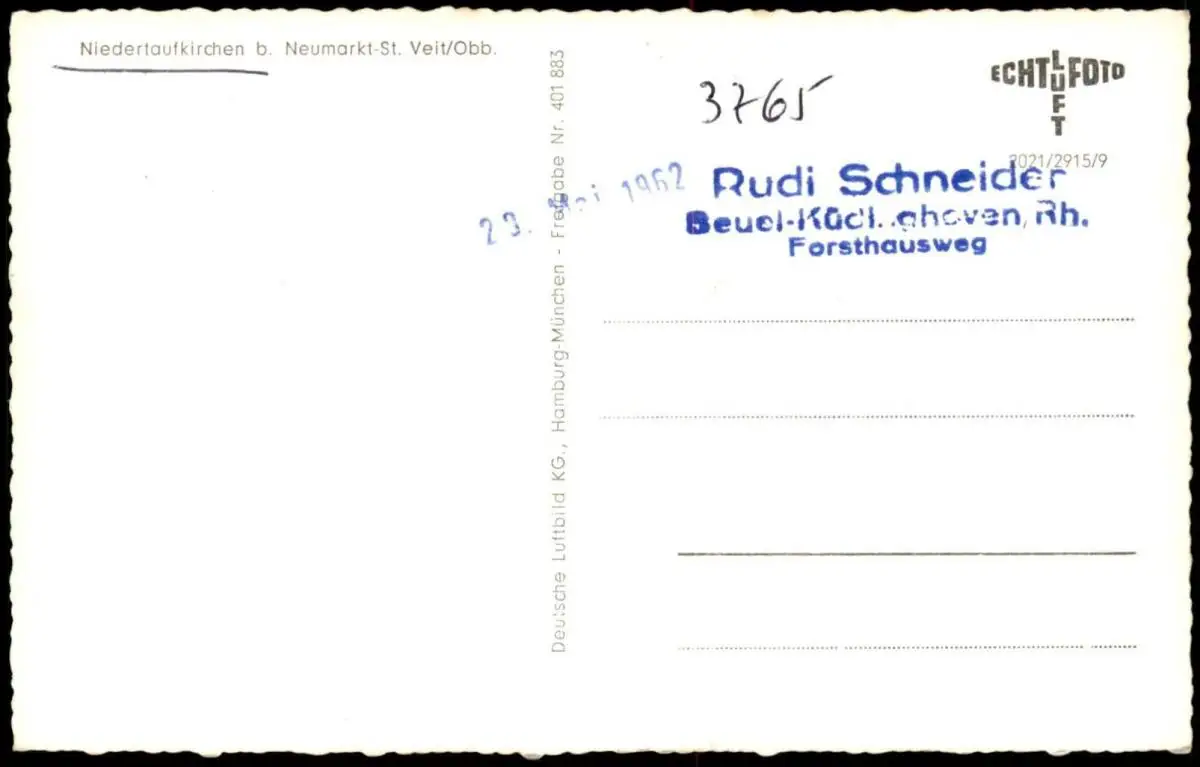 ÄLTERE POSTKARTE NIEDERTAUFKIRCHEN BEI NEUMARKT ST. VEIT PANORAMA TOTALANSICHTVerlag: Deutsche Luftbild KG, Hamburg München