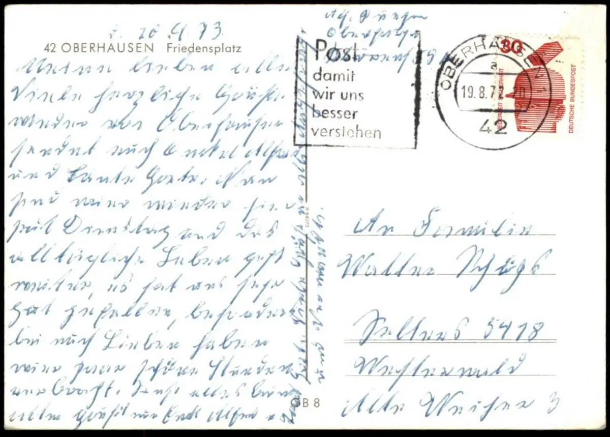 Gelaufen: 19.08.1972 mit Stempel Oberhausen nach Selters Westerwald