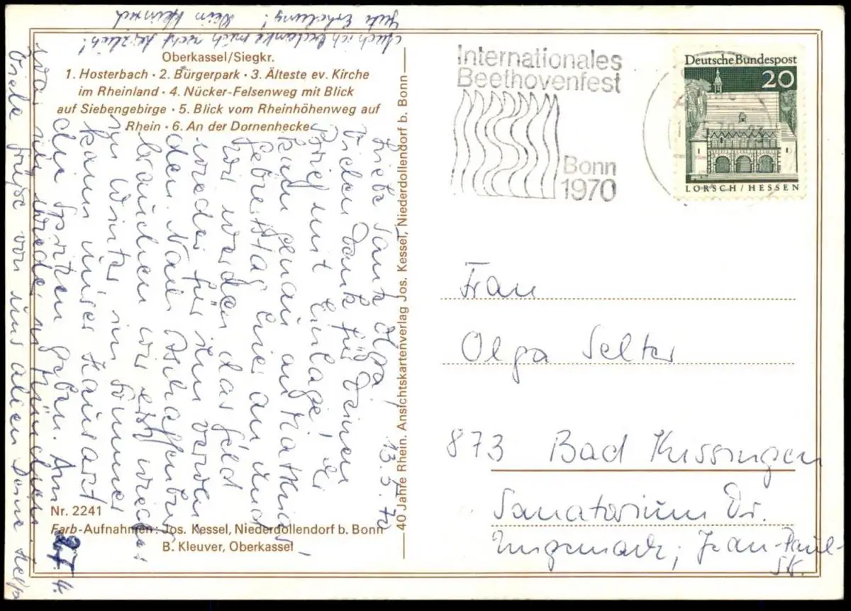 Verlag: Jos. Kessel, Niederdollendorf; B. Kleuver, OberkasselGelaufen: 13.05.1970 mit Stempel Bonn Beethovenfest nach Bad KissingenErhaltung (s. Scan): gut - sehr gut / 915469