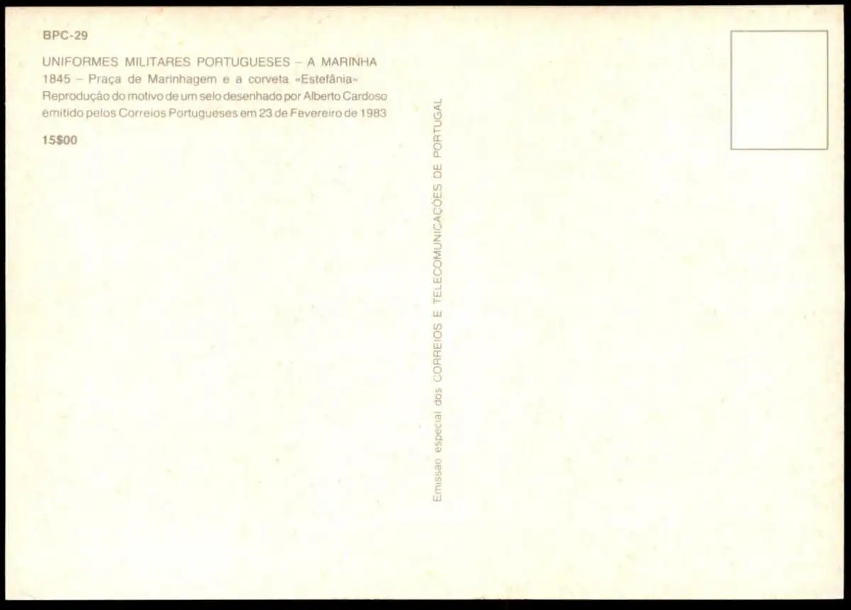 ÄLTERE POSTKARTE PORTUGAL MAXIMUMKARTE BPC-29 UNIFORMES MILITARES PORTUGUESES LISBOA 1845 PRACA DE MARINHAGEM E A CORVETA ESTEFANIA