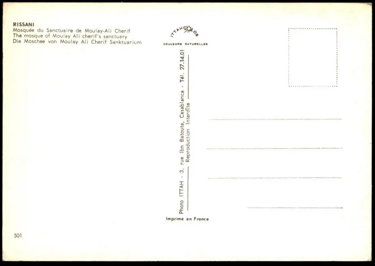 ÄLTERE POSTKARTE RISSANI MOSQUÉE DU SANCTUAIRE DE MOULAY-ALI CHERIF