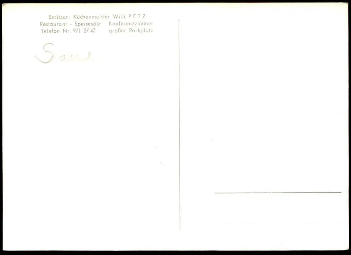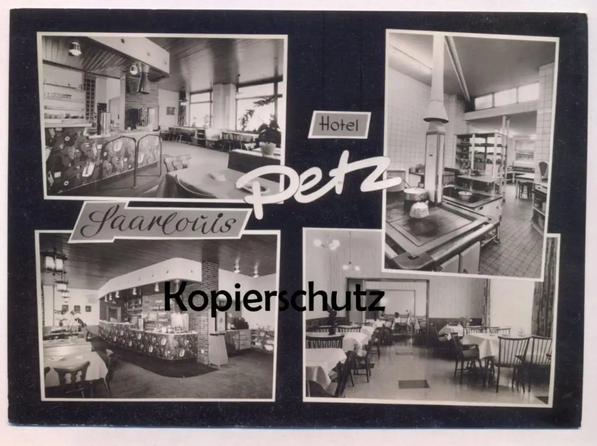 ÄLTERE POSTKARTE SAARLOUIS HOTEL PETZ INHABER KÜCHENMEISTER WILLI PETZ KÜCHE WAAGE LÖWEN AUTOMAT addi-mint Ansichtskarte