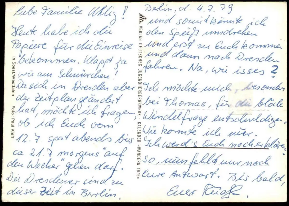 Gelaufen: nein, beschrieben 04.07.1979 in BerlinErhaltung (s. Scan): mittel - schlechter, oben bestoßen, mittig leichter Knick, rückseitig kleine Albumspur, aus Kalender stammend / 917456